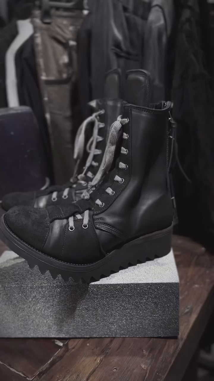 Эти ботинки D.HYGEN, изготовленные из высококачественной конской кожи растительного дубления, сочетают в себе долговечность и изысканный стиль. Благодаря уникальной подошве Vibram Shark они обеспечивают исключительный комфорт благодаря подъему на 3,5 см и идеально подходят для городских приключений. Ботинки отличаются характерным узором шнуровки и удлиненным мягким язычком, что придает им нотку изысканности. Изготовленные вручную в Японии из оригинальных материалов, каждая пара проходит тщательную обработку для достижения поразительной трехмерной формы.