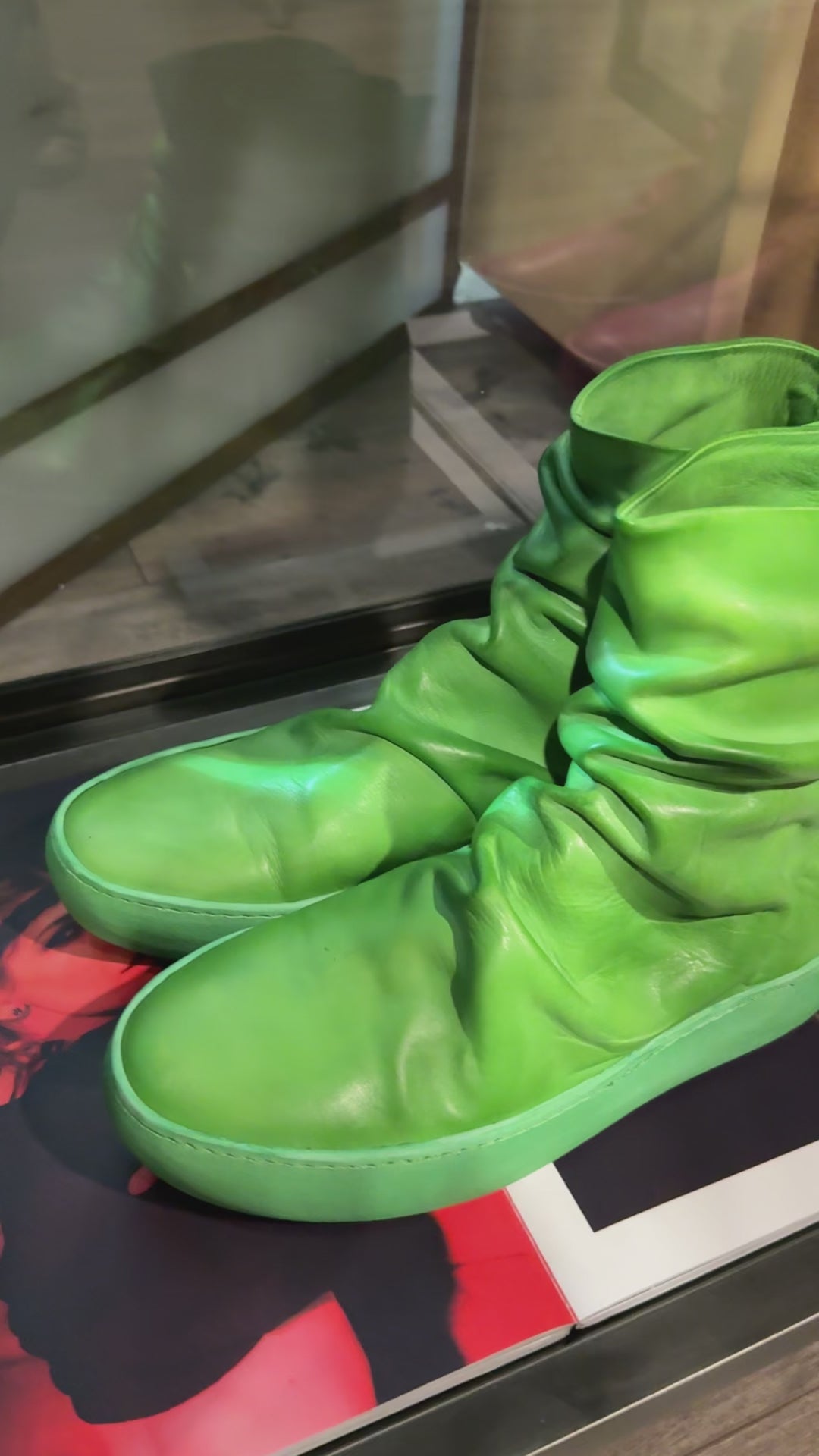 Описание : Зеленые высокие кеды из высококачественной кожи с уникальным дизайном со сборками и прочной резиновой подошвой.